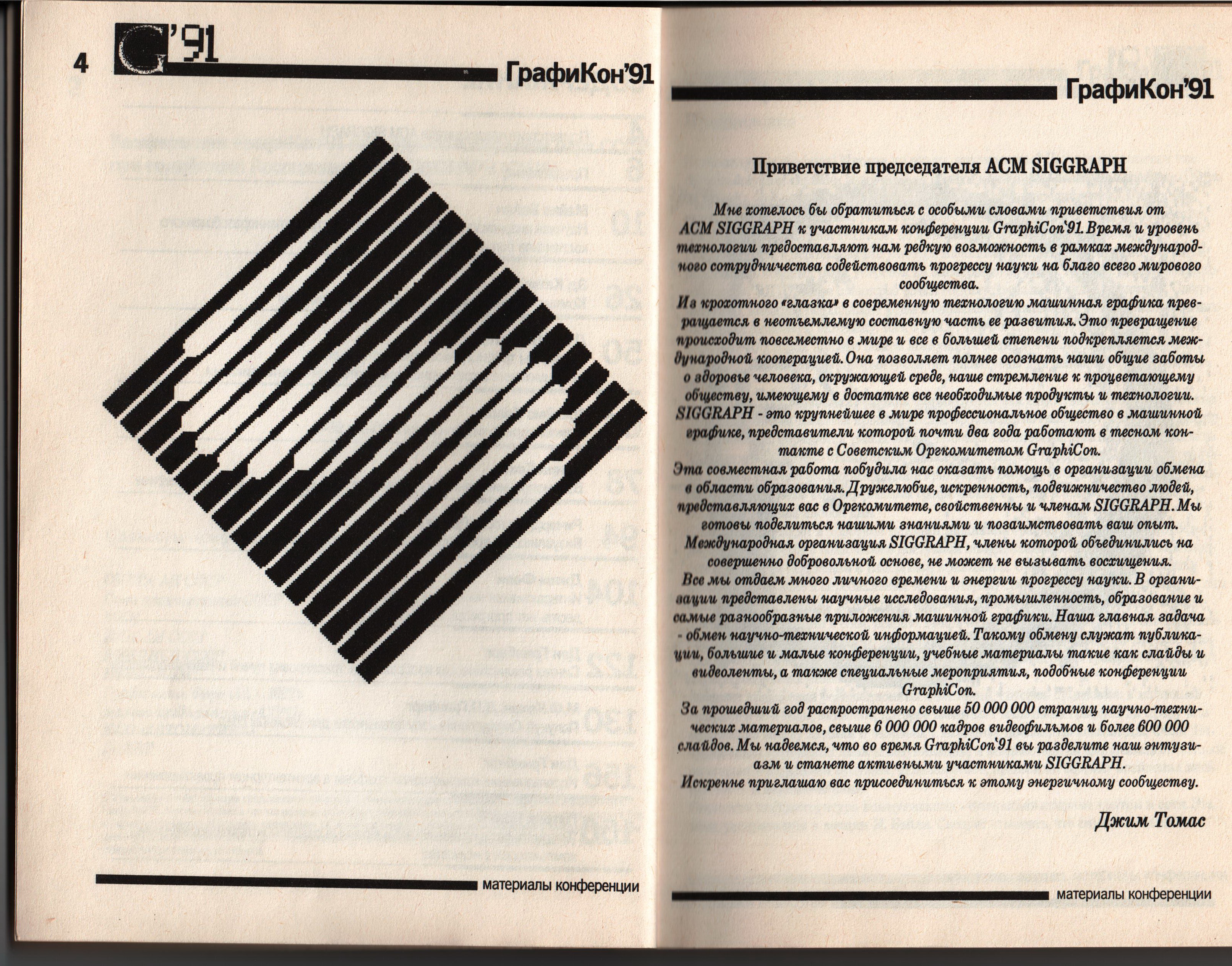 Рис. 10. Приветствие Председателя ACM SIGGRAPH Дж.Томаса участникам конференции.