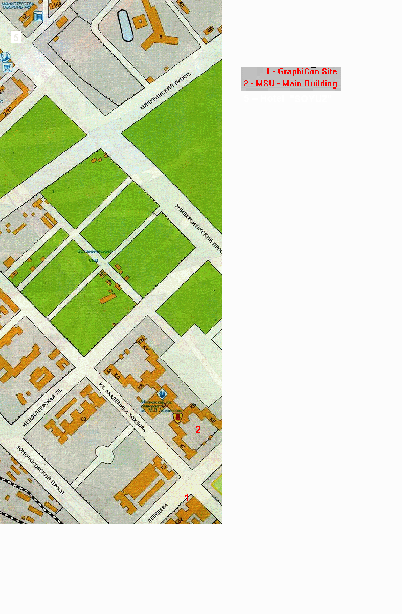4. HOTEL. We are booking you the hotel in the main building of Moscow State University (in Russian - "glavnoie zdanie moskovskogo universiteta, zona E"). This hotel is destined mainly for visiting professors and other guests of Moscow University. Prices: 16-18 USD per night for Single; 40-50 USD per night for Double (without break-fast). Payment in rubles according to current rate exchange.